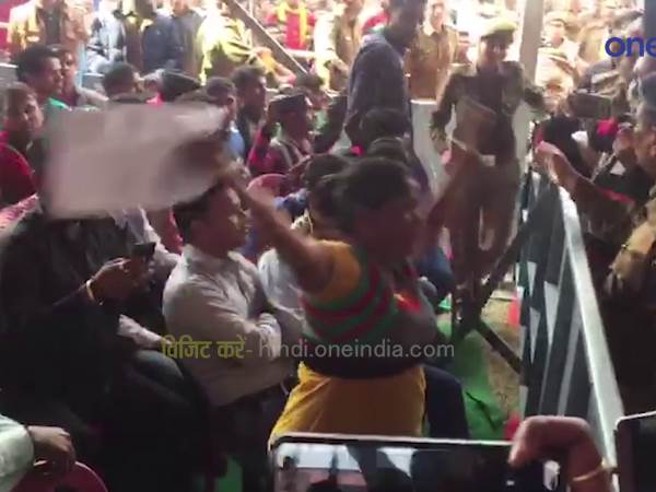 VIDEO: सीएम योगी की सभा में महिला ने जमकर किया हंगामा, चिल्लाती रही मुझे न्याय दिलाओ