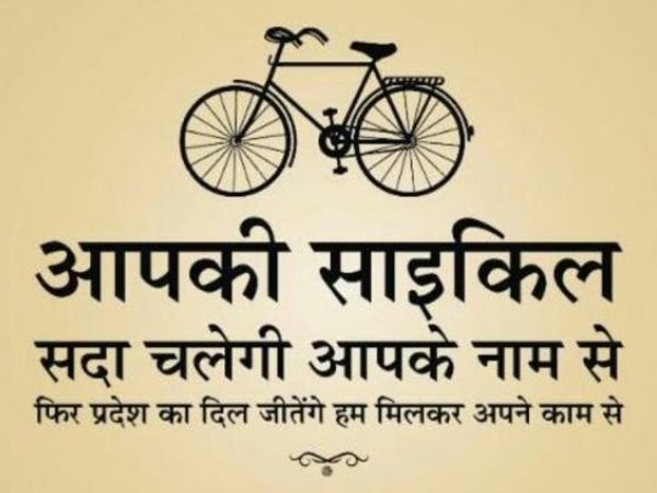 समाजवादी पार्टी का नया नारा होगा...आपकी साइकिल सदा चलेगी आपके नाम से, फिर प्रदेश का दिल जीतेंगे हम मिलकर अपने काम से।