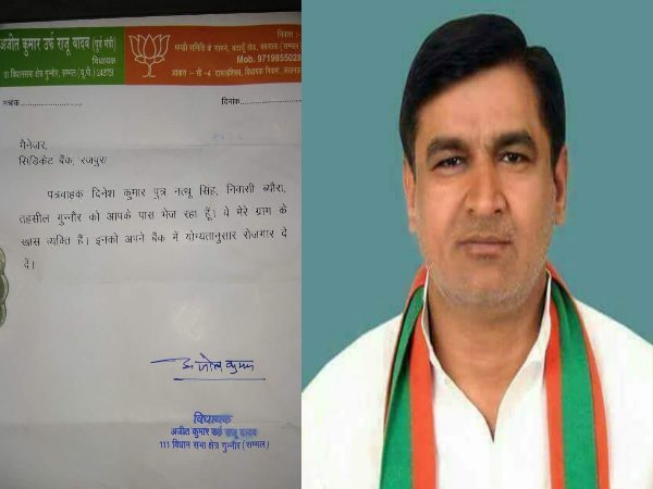 'खास आदमी है, इसे बैंक में नौकरी दे दो' लिखा भाजपा विधायक का लेटर हेड वायरल