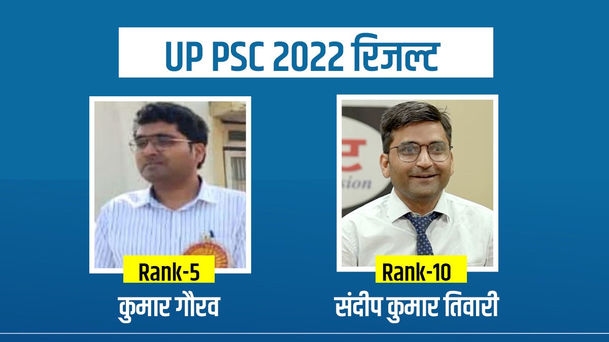 UPPSC PCS 2022 Success Story kumar gaurav and sandeep kumar tiwari: उत्तर प्रदेश लोक सेवा आयोग (UPPSC) ने पीसीएस 2022 के फाइनल रिजल्ट जारी कर दिए हैं। यूपी पीसीएस परीक्षा -2022 के रिजल्ट आते ही सोशल मीडिया पर टॉपर्स की सफलता की कहानी चर्चाओं में है। इस बार यूपी पीसीएस परीक्षा -2022 में टॉप-10 में 8 महिलाएं और सिर्फ दो पुरुष हैं। टॉप-10 में अंबेडकर नगर के कुमार गौरव रैंक-5 पर हैं और दसवें नंबर पर गोंडा के संदीप कुमार तिवारी हैं।