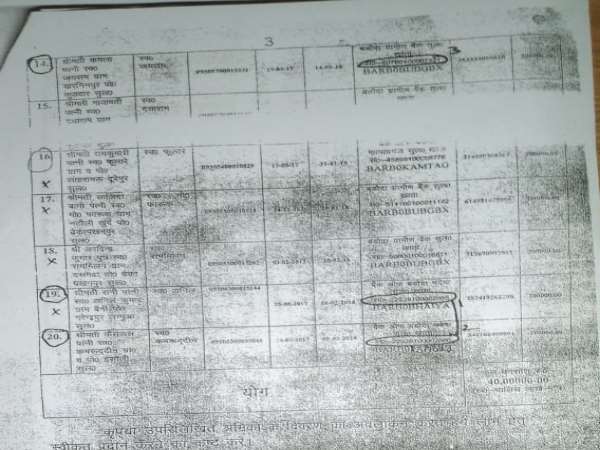 पहले देखिये सीरियल नम्बर 2 और 3, सीरियल नम्बर दो में लाभार्थी का नाम रामलोचन और सीरियल नम्बर 3 में लाभार्थी का नाम श्रीमती हकीम लिखा हुआ है जबकि दोनों के खाते एक ही हैं। इसी तरह सीरियल नम्बर-12,13,और 14 में लाभार्थियों का नाम अलग अलग है जबकि इन तीनों का खाता एक ही है। इसी तरह सीरियल नम्बर 19 और 20 में भी लाभार्थी अलग अलग और दोनों के खाते एक हैं। दिलचस्प बात तो ये है कि इस पेपर पर सहायक पटल, सहायक श्रमायुक्त रामउजागिर यादव , अपर जिलाधिकारी प्रशासन और तात्कालिक जिलाधिकारी संगीता सिंह के सिग्नेचर मौजूद हैं। यानी कि इतने बड़े बड़े अधिकारियों से होते हुए ये पेपर जिलाधिकारी तक पहुँच गया और किसी ने भी इन खातों पर नजर डालना जरुरी नहीं समझा।