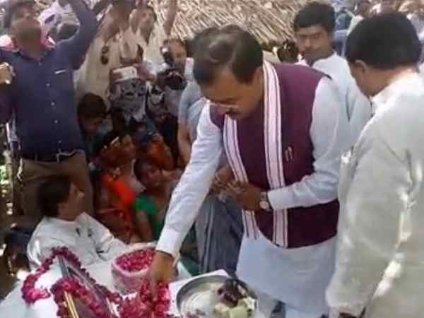 यहां सबसे पहले वह उस पीड़ित परिवार से मिले जिस परिवार की दो सगी बहनों की हत्या कर दी गयी थी। उन्होंने बेटियों के पिता रामकिशोर शाक्य को दस लाख रुपया की चेक प्रदान करने के साथ ही इस परिवार को सांत्वना दी।