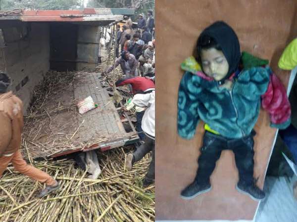 यात्रियों से भरी जीप पर पलटा गन्ने से भरा ट्रक, दो महिलाओं समेत एक बच्चे की मौत, तीन घायल