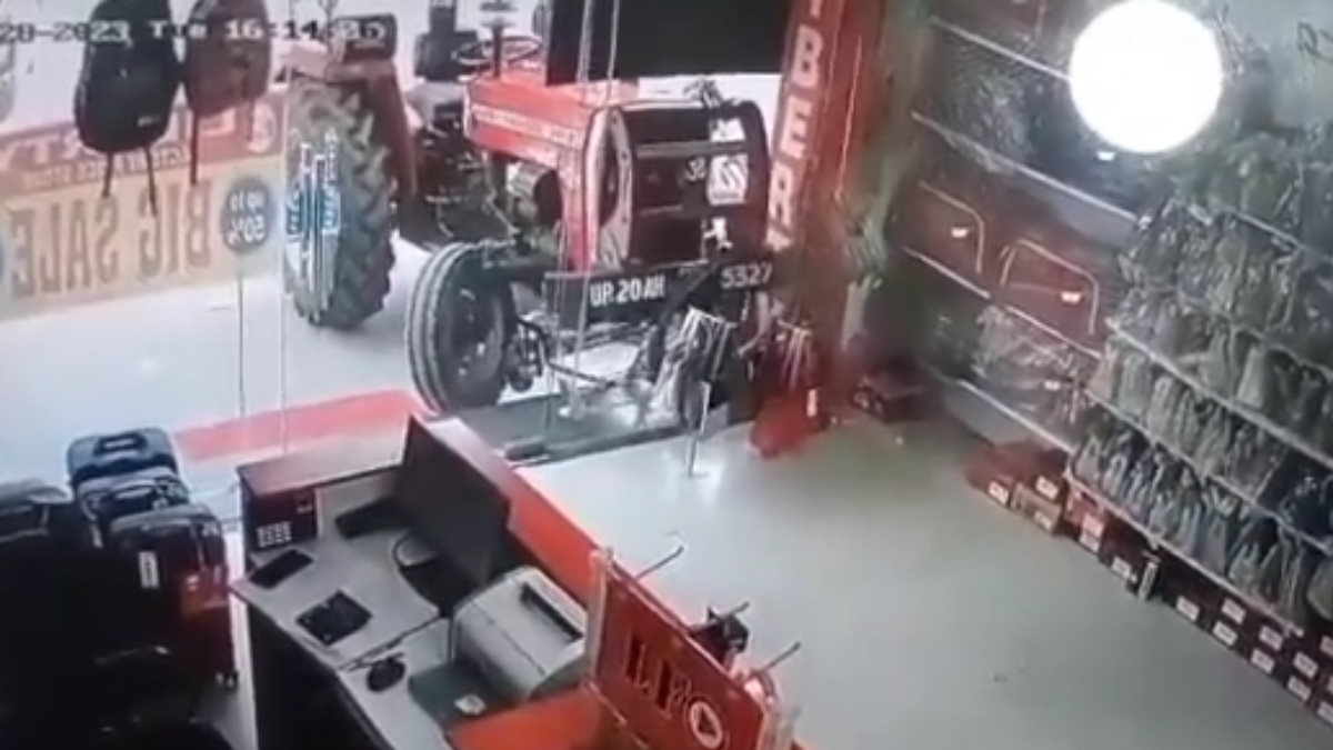 ड्राइवर के बिना अचानक स्टार्ट हुआ ट्रैक्टर, शोरूम में घुसकर मचाई तबाही, देखें हैरान कर देने वाला VIDEO
