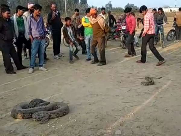 खेत में आलू की खुदाई कर रहे किसानों का हुआ 2 अजगर से सामना