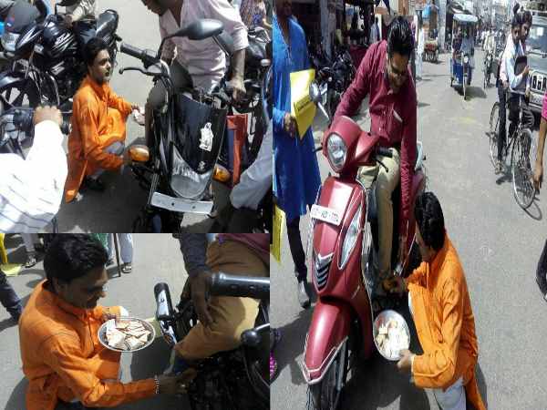 सबसे पहले संजीव ने एक प्लेट लेकर बीच रोड पर राह चलते लोगों से भीख मांगी और साथ ही गरीबी को दर्शाते हुए रोड के किनारे बैठकर जूतों पर पॉलिश करने लगे।