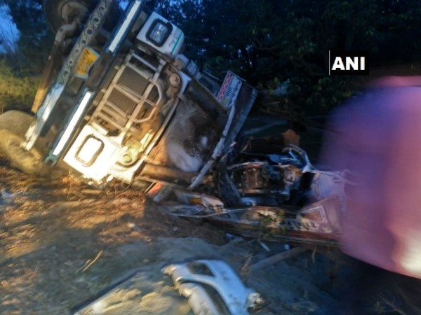 उन्नावः रेत से भरा ट्रक पलटा, पांच की मौत, दो घायल