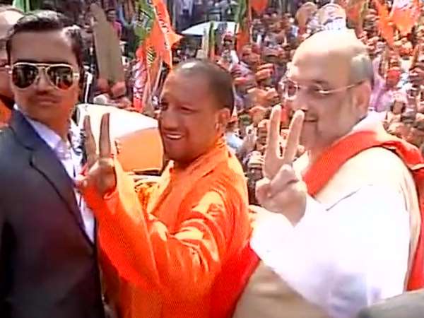 गोरखपुर में अमित शाह का रोड शो, आदित्यनाथ भी रहे साथ