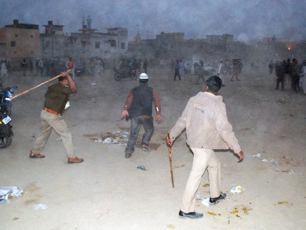 पुलिस पर किया गया पथराव