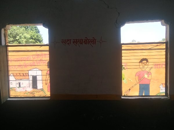 स्कूल की दीवारें, बाउड्री, शौचालय, अतिरिक्त कक्ष और रसोई तक सब केसरिया रंग में रंगे है। स्कूल की छतों और दीवारो में भले ही दरारें हों, भवन बरसात के दिनों में और भी कमजोर हो जाएगा, विद्यालय परिसर में गंदगी और आस पास झाड़ियां उगी हों उसे साफ कराने व भवन को ठीक कराने में अधिकारियों की कोई रुचि नही है लेकिन भगवा रंग में रंगा ये विद्यालय आज से खुलने के लिए तैयार खड़ा है।