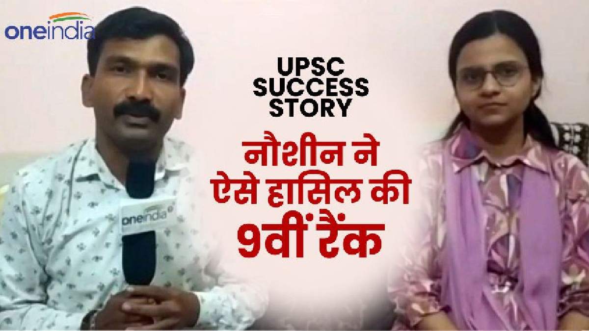 UPSC Success Story Of Nausheen: संघ लोक सेवा आयोग यूपीएससी ने मंगलवार को सिविल सेवा परीक्षा 2023 का फाइनल रिजल्ट घोषित कर दिया। देश की सबसे कठिन मानी जाने वाली इस परीक्षा में गोरखपुर की रहने वाली नौशीन ने पूरे देश में 9वीं रैंक हासिल की है। इस दौरान उन्हें कई चुनौतियों का सामना भी करना पड़ा। वन इंडिया हिंदी रिपोर्टर पुनीत श्रीवास्तव ने नौशीन से खास बातचीत की। इस दौरान नौशीन ने अपने संघर्ष की पूरी कहानी बताने के साथ युवाओं से कुछ जरुरी अपील भी की।