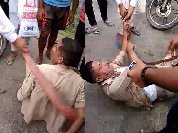 सिपाही को उसकी बेल्ट से पीटा, वर्दी भी फाड़ी, देखें वीडियो