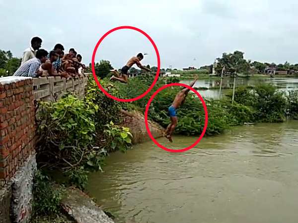 मामला कानपुर देहात के रसूलाबाद थाना क्षेत्र के महेरा गांव का है जहां बहने वाली रिंद नदी के पुल पर मौजूद ये बच्चे अपनी जान जोखिम में डालकर काफी ऊपर से छलांग लगाते हैं। कुछ बच्चे तो ये स्टंट मजे के लिए तो कुछ दर्शकों की वाहवाही और पैसों के लिए करते हैं। बता दें कि यूपी में लगातार बारिश की वजह से बाढ़ की स्थित बनी हुई है ऐसे में रिंद नदी का भी जलस्तर काफी अधिक है। जलस्तर बढ़ा होने के बावजूद नदी में छलांग लगाता कितना घातक साबित हो सकता है इसका अंदाजा आप खुद लगा सकते हैं।