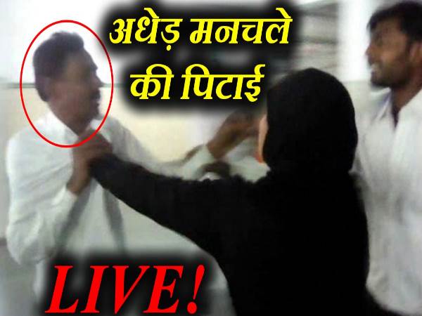 VIDEO: छिछोरी हरकत कर रहे अधेड़ मनचले की मुस्लिम महिला ने की सरेआम पिटाई