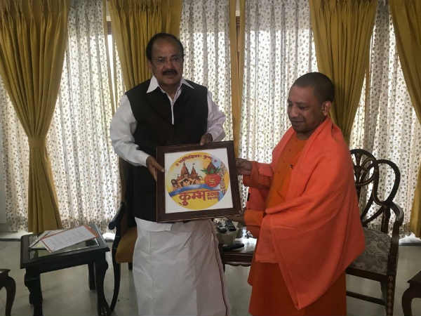 उपराष्ट्रपति से मिले योगी आदित्यनाथ, भेंट किया कुंभ मेले का लोगो