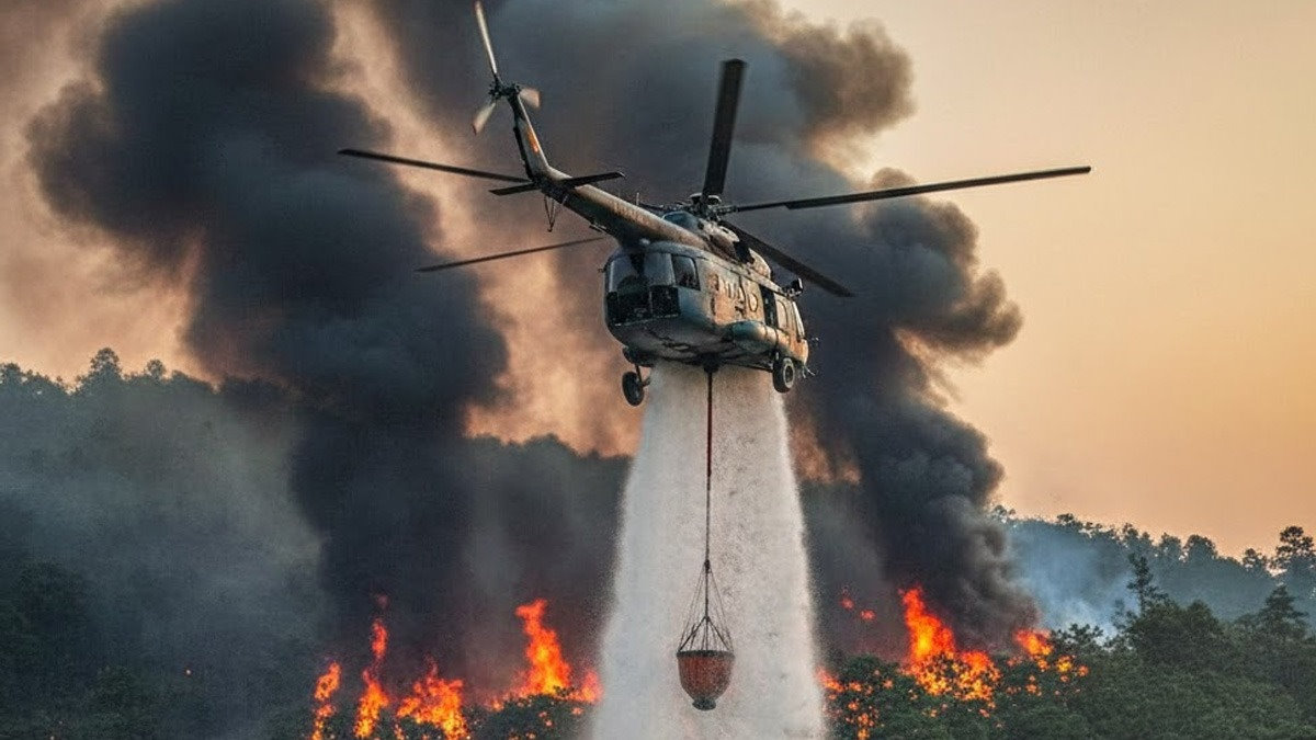 भारतीय वायुसेना कमान संभालते हुए एमआई-17 वी5 हेलीकॉप्टर की मदद से आग पर काबू पाने की कोशिश करेगी। बुधवार को हेलीकॉप्टर के जरिए हवाई सर्वेक्षण किया गया। आईएएस एमसीसी (इंडियन एयर फोर्स मास्टर कंट्रोल सेंट्रल) ने 'एक्स' पर पोस्ट कर जानकारी दी है।