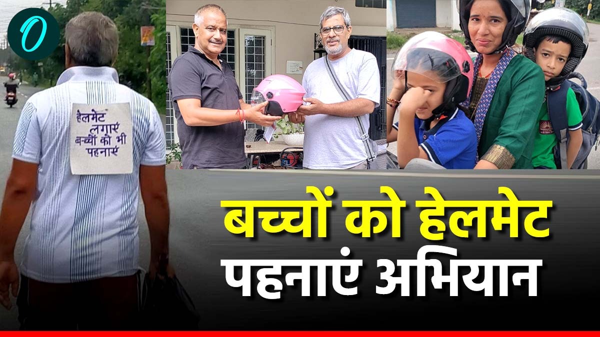पीठ पर चस्पा पोस्टर में हेलमेट लगाने और बच्चों को भी पहनाने का संदेश लिखा है। आइए जानते हैं कि क्या है ये अभियान और मैसेज देने का ये तरीका क्यों अपनाना पड़ा।