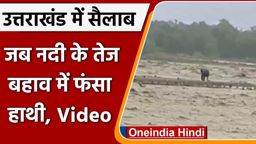 उत्तराखंड: बाढ़ में फंस गया हाथी, पानी से निकलने की जद्दोजहद का वीडियो वायरल