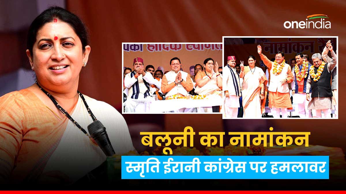 पौड़ी गढ़वाल लोकसभा सीट से भाजपा के प्रत्याशी अनिल बलूनी के नामाकंन में आज केंद्रीय मंत्री स्मृति ईरानी पौड़ी पहुंची। जहां स्मृति ईरानी कांग्रेस पर जमकर बरसी। स्मृति ईरानी ने कांग्रेस पर हमला करते हुए निर्लज पार्टी करार दिया।