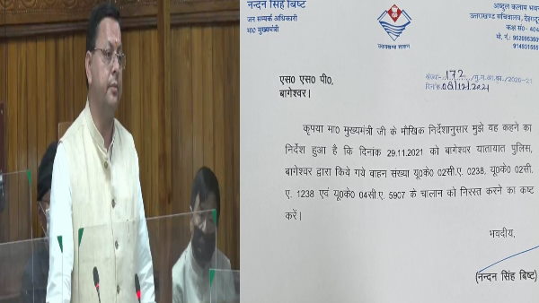 'मुख्यमंत्री जी के मौखिक निर्देशानुसार मुझे यह कहने का निर्देश हुआ है कि दिनांक 29.11.2021 को बागेश्वर यातायात पुलिस, बागेश्वर द्वारा किये गए वाहन संख्या यूके 02 सीए 0238, यूके 02 सीए 1238 और यूके 04 सीए 5907 के चालान को निरस्त करने का कष्ट करें'