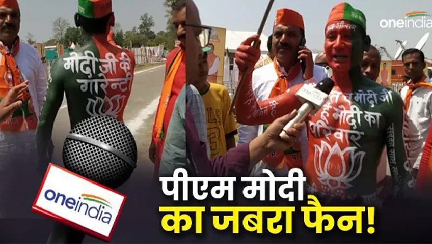 उत्तराखंड के ऋषिकेश में आज पीएम मोदी की चुनावी रैली हुई। चुनावी रैली में हजारों की संख्या में लोग मोदी को सुनने के लिए पहुंचे। इस चुनावी रैली में कई तरह के रंग भी नजर आए साथ ही मोदी के कई जबरदस्त फैन भी नजर आए। जो कि मोदी से काफी प्रभावित हैं और एक बार मोदी से मिलने की इच्छा रखते हैं। ऐसे ही मोदी के जबरा फैन कोटद्वार के मनोज जखमोला से वन इंडिया ने बातचीत की।