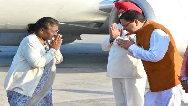 राष्ट्रपति द्रौपदी मुर्मू दो दिवसीय दौरे पर देहरादून पहुंच गई हैं। जौलीग्रांट हवाई अड्डे पर राज्यपाल लेफ्टिनेंट जनरल (सेवानिवृत्त) गुरमीत सिंह और मुख्यमंत्री पुष्कर सिंह धामी ने उनका स्वागत किया। यहां उन्हें गार्ड ऑफ ऑनर दिया गया। यहां से वह हेलीकॉप्टर से जीटीसी हेलीपैड पहुंची और राजभवन के लिए रवाना हुई। आज शाम साढ़े छह बजे उनका मुख्यमंत्री आवास पर आगमन होगा। यहां उनके नागरिक अभिनंदन के साथ ही एक सांस्कृतिक कार्यक्रम भी होगा। इस दौरान राष्ट्रपति उपस्थित अतिथियों को संबोधित भी करेंगी। विकास से संबंधित एक डाक्यूमेंट्री भी दिखाई जाएगी। राष्ट्रपति नौ परियोजनाओं का शिलान्यास और लोकार्पण भी करेंगी। उनका रात्रि प्रवास राजभवन में होगा। शुक्रवार को राष्ट्रपति राजभवन में नक्षत्र वाटिका का शुभारंभ करेंगी। इसके बाद मसूरी स्थित लाल बहादुर राष्ट्रीय प्रशासनिक अकादमी के कार्यक्रम में शामिल होंगी। जहां वह प्रशिक्षु आईएएस को संबोधित करेंगी। इसके बाद वह दोपहर दो बजे देहरादून लौटेंगी। शाम चार बजे वह दून विवि के दीक्षांत समारोह में शामिल होंगी। जिसके बाद दिल्ली रवाना हो जाएंगी।