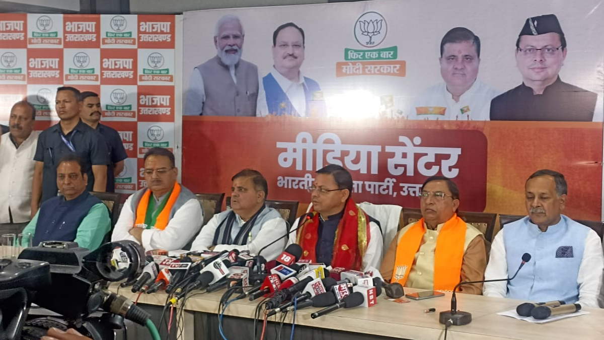 Uttarakhand: उत्तराखंड के मुख्यमंत्री पुष्कर सिंह धामी ने सोमवार को देहरादून स्थित भारतीय जनता पार्टी के मीडिया सेंटर में भाजपा द्वारा जारी संकल्प पत्र "भाजपा का संकल्प- मोदी की गारंटी 2024" के संबध में पत्रकार वार्ता की।