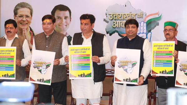 देवेंद्र यादव ने कहा है कि कांग्रेस ने 670 न्याय पंचायतों में जाकर जन समस्याओं को जानने की कोशिश की। इस दौरान कांग्रेस के सामने महंगाई और बेरोजगारी जैसे बड़े मुद्दे सामने आए हैं। देवेंद्र यादव ने कहा कि कांग्रेस का घोषणापत्र प्रतिज्ञापत्र की तरह होगा। इसे तैयार करने के लिए जनता से रायशुमारी की जाएगी। इसके लिए पार्टी टोल फ्री नंबर जारी कर रही है। इस पर प्रदेश के लोग अपनी राय दे सकते हैं। टोल फ्री नंबर के माध्यम से जो भी सुझाव आएंगे, उन्हें कांग्रेस नेतृत्व तक पहुंचाया जाएगा। उन्होंने कहा कि अपने विचार और मुद्दों को प्रतिक्षापत्र में शामिल करवाने के लिए 1800212000055 पर कॉल कर सकते हैं। या 1800123000055 पर मिस कॉल कर सकते हैं। इसके अलावा 9099283377 पर व्हाट्सएप के माध्यम से अपने सुझाव दे सकते हैं। इस दौरान एक गीत भी लॉच किया गया।कांग्रेस प्रदेश अध्यक्ष गणेश गोदियाल ने कहा कि अंतिम छोर के व्यक्ति के सुझाव कांग्रेस नेतृत्व के पास पहुंच सके, इसके लिए इस नंबर को जारी किया गया है। उन्होंने कृषि कानून की तरह देवस्थानम बोर्ड को भी निरस्त करने की मांग की है। उन्होंने यह भी कहा कि सरकार रोजगार एक्ट लाए।