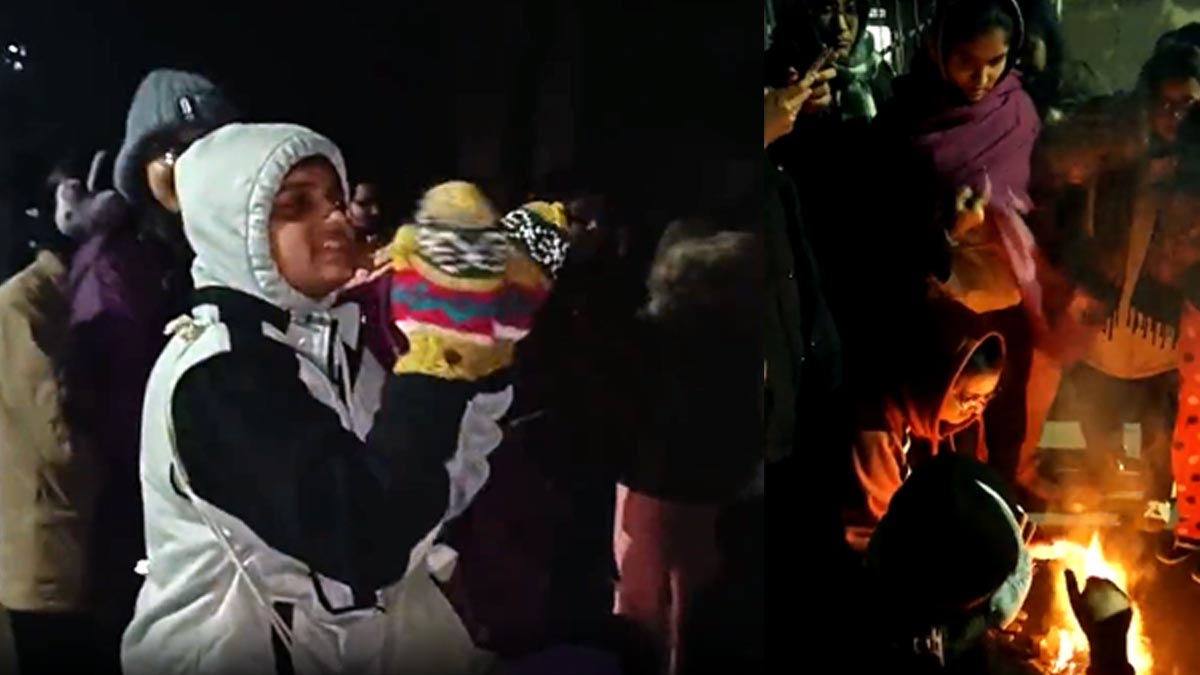 अलाव जलाकर छात्राएं देती रही धरना
