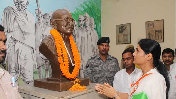 कार्यक्रम के दौरान मौजूद लोगों को संबोधित करते हुए उन्होंने कहा कि पूज्य बापू सहित उन अनगिनत लाखों-करोड़ों स्वतंत्रता संग्राम सेनानियों को मैं नमन करती हूं। उनके ही कारण आज हम आजाद हवा में सांस ले रहे हैं। आज भारतवर्ष दुनिया का सबसे बड़ा लोकतंत्र है। उन्होंने यह भी कहा कि अंतिम पायदान में जीने वाली, जनजाति, वनवासी समाज और जल, जंगल व जमीन के संघर्ष से होकर गुजरने वाली द्रौपदी मुर्मू जी हमारे देश की राष्ट्रपति हैं, ऐसा सिर्फ भारत के लोकतंत्र में ही संभव है। 135 करोड़ भारतीयों का सर उनके सामने सम्मान से झुकता है जो लोकतंत्र के लंबे संघर्ष की देन है।