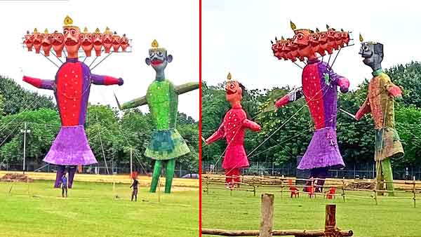 Dussehra 2022 : बारिश में भीग गया रावण का परिवार, पुतला सीधा करने के लिए मंगाई गई क्रेन