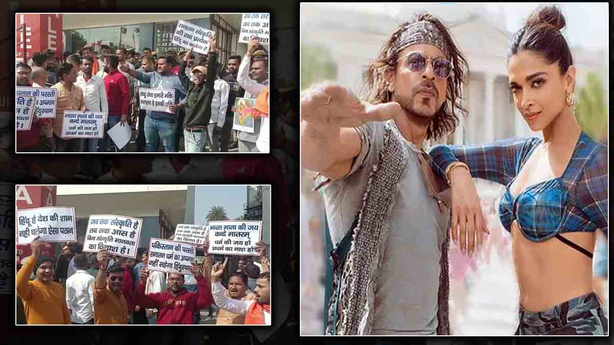 हिंदू जागरण मंच के जिला संयोजक विकास रविवार को हिंदू जागरण मंच से जुड़े दर्जनों नेताओं और कार्यकर्ताओं को लेकर सिगरा स्थित आईपी माल के सामने पहुंचे। नेता और कार्यकर्ता अपने हाथ में तख्तियां लिए हुए थे। लोगों ने आईपी मॉल के बाहर जय श्री राम और हर हर महादेव का नारा लगाना शुरू किया। इसके अलावा लोगों ने फिल्म देखने जा रहे दर्शकों से फिल्म ना देखने का अनुरोध किया। विकास कुमार ने बताया कि शाहरुख खान की फिल्म पूरी तरह से फ्लॉप है और इस फिल्म को देखने के लिए कोई भी व्यक्ति नहीं पहुंच रहा है। हालांकि उन्होंने यह भी कहा कि वह किसी अभिनेता अर्थात शाहरुख खाने या दीपिका पादुकोड़ का विरोध नहीं कर रहे हैं, फिल्म में आपत्तिजनक दृश्य दिखाया गया है, जिसके चलते वे फिल्म का विरोध कर रहे हैं।