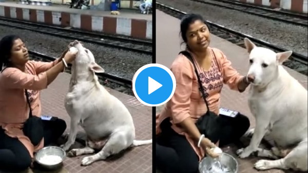 रेलवे स्टेशन पर आवारा कुत्ते को दही-चावल खिलाती महिला का वीडियो वायरल, ये कहां का है जानिए