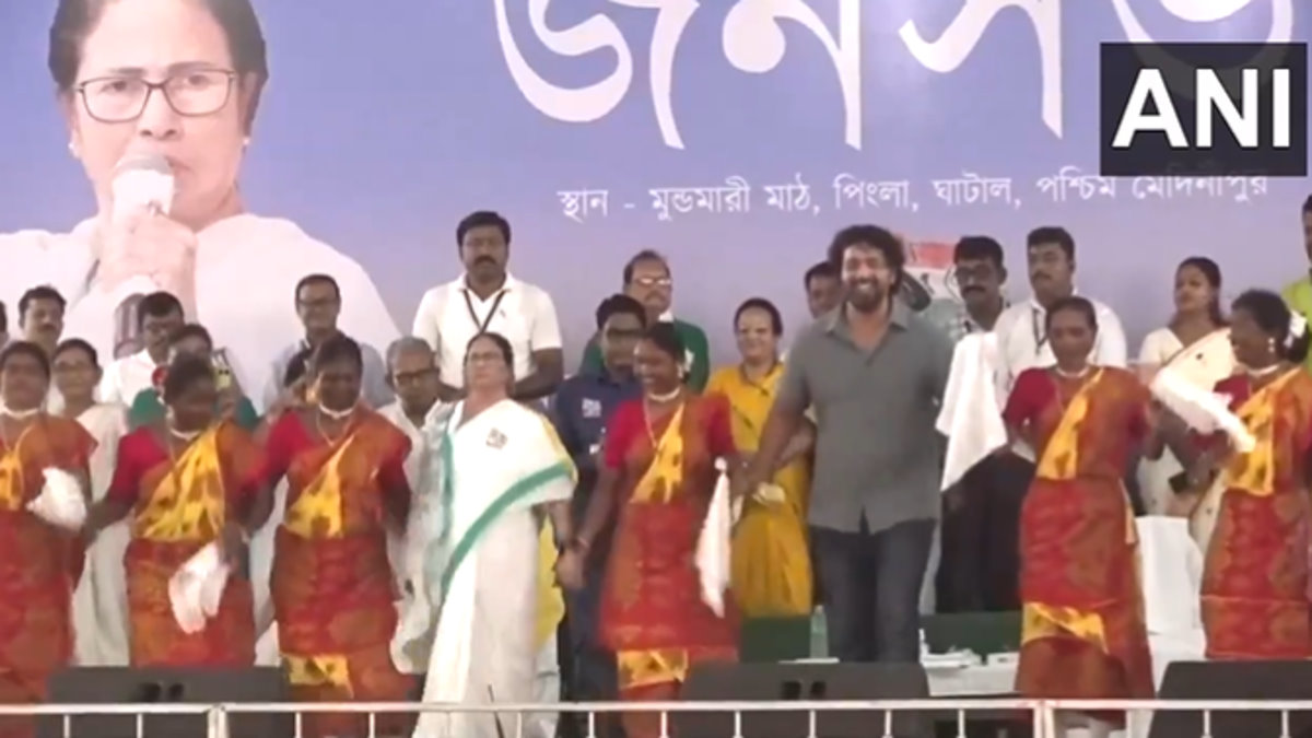 #WATCH | West Bengal CM Mamata Banerjee joins the local artists in dancing, during her public rally in Ghatal in Paschim Medinipur.