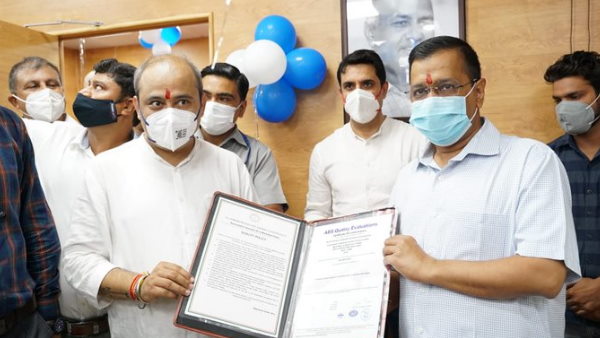 आप विधायक दिलीप पांडे के ऑफिस को मिला देश का पहला आईएसओ प्रमाण पत्र