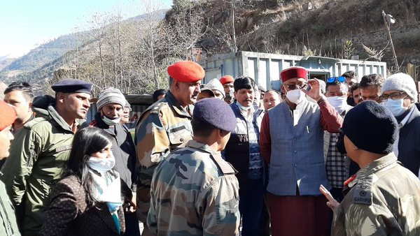 मुख्यमंत्री त्रिवेंद्र सिंह रावत बीती सोमवार शाम हेलीकॉप्टर से जोशीमठ पहुंचे। इसके बाद उन्होंने आपदा प्रभावित क्षेत्र तपोवन में जाकर राहत-बचाव कार्यों का स्थलीय निरीक्षण किया। रात्रि को भारत तिब्बत सीमा पुलिस (आइटीबीपी) गेस्ट हाउस में ठहरने के बाद सीएम ने सुबह सेना अस्पताल में जाकर घायलों का हालचाल जाना। उन्होंने सेना के उच्चाधिकारियों को घायलों को बेहतर इलाज उपलब्ध करने के निर्देश दिए। इसके बाद मुख्यमंत्री हेलीकॉप्टर से नीति घाटी के आपदा प्रभावित गांवों में उतरे। मुख्यमंत्री ने रैणी व लाता में आपदा प्रभावितों से मुलाकात कर उनका हालचाल जाना। उन्होंने आपदा में मरने वाले ग्रामीणों के घर जाकर स्वजनों को सांत्वना दी। साथ ही प्रभावित गांवों में पहुंचकर स्थिति का जायजा लिया।