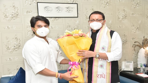 उत्तराखंड के मुख्यमंत्री पुष्कर सिंह धामी ने दिल्ली में ज्योदिरादित्य सिंधिया से की मुलाकात