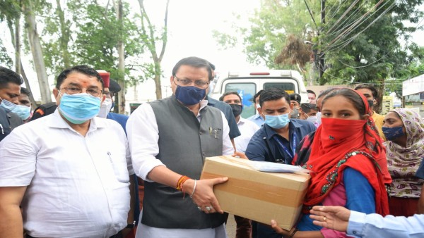 उत्तराखंड सीएम ने आवासहीन परिवारों को बांटी राशन किट, शुरू किया मोबाइल टीकाकरण अभियान