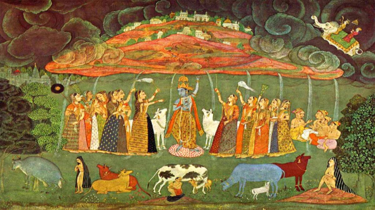 कनिष्ठा उंगली पर कान्हा ने उठाया गोवर्धन पर्वत
