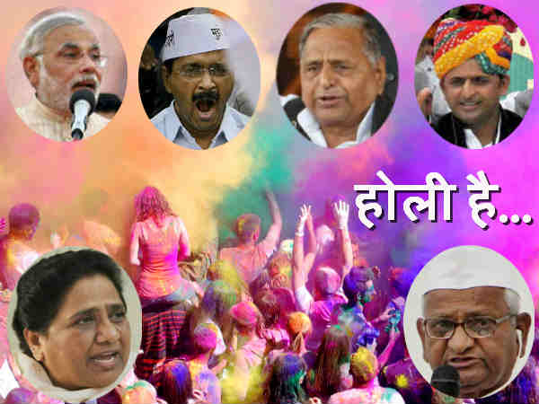 राहुल गांधी परेशान हैं क्योंकि हथेली पर पीला रंग नहीं चढ़ पा रहा है, बात भी सही है, पहले करियर फिर शादी। दिग्विजय उस बच्चे के लिये हैरान परेशान हैं, जिसने 10 साल पहले अपने घर पर एक-56 छिपाकर रख ली थी। नाम है संजू, जिसके लिये दिग्गी राजा कहते हैं कि बच्चे को माफ कर देना चाहिये। मुलायम सिंह यादव होली के हुल्लड़ में यूपीए के जिस नेता को चाहे पोत सकते हैं, कोई बुरा नहीं मानने वाला, क्योंकि यूपीए की सत्ता की चावी इनके हाथ में है। ऐसे ही कई और नेताओं की होली कैसी रहेगी।
