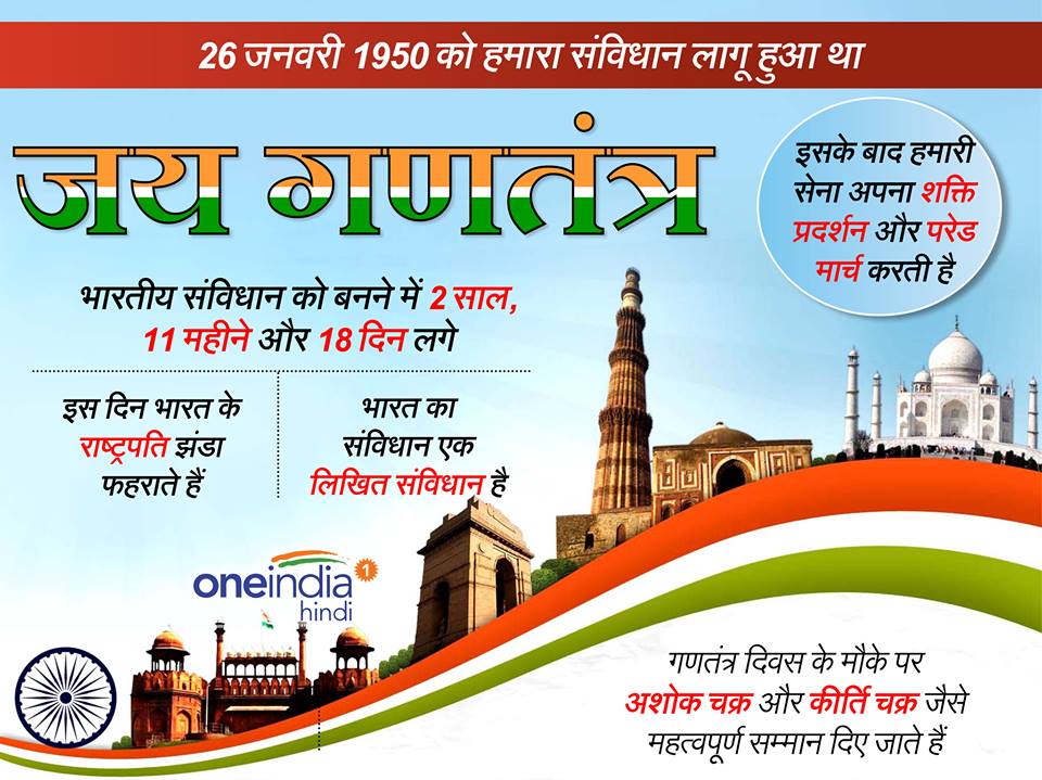 - 26 जनवरी 1950 को हमारा संविधान लागू हुआ था।