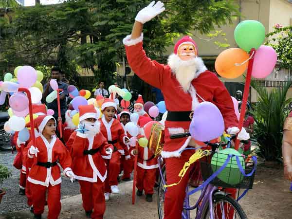 कोच्चि किले के पास सैंटा क्लॉज ने घूम-घूम कर लोगों को क्रिस्मस की तैयारी करने के लिये उत्साहित किया।