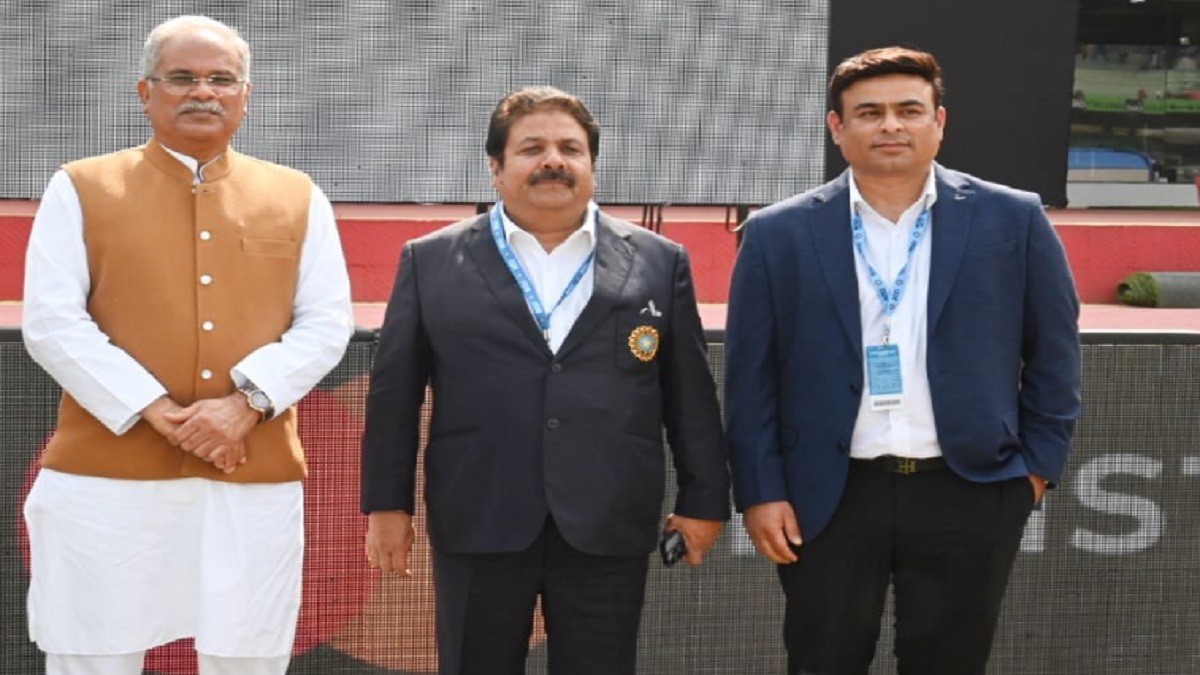 छत्तीसगढ़ के रायपुर में पहली बार इंटरनेशनल क्रिकेट मैच खेला गया। भारत-न्यूजीलैंड के बीच खेले गए इस मुकाबले को देखने के लिए राज्य के सीएम भूपेश बघेल भी पहुंचे। भूपेश बघेल के साथ राज्य सरकार के कई कैबिनेट मंत्री और सांसद भी मौजूद थे।दूसरे एक एकदिवसीय के सफल आयोजन से छत्तीसगढ़ के मुख्यमंत्री भूपेश बघेल गदगद नजर आए। न सिर्फ उन्होंने स्टेडियम पहुंचकर मैच का आनंद लिया बल्कि टीम इंडिया की जीत के बाद हाथ से चौके मारने का इशारा कर अपनी खुशी भी जाहिर की।