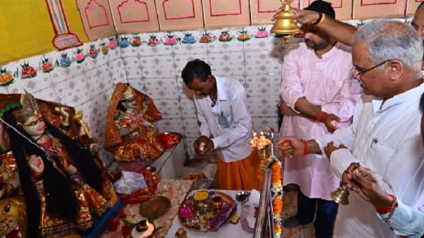 बेलौदी पहुंचे सीएम बघेल ने किए देवी मां के दर्शन, सरपंच सारथी के दिवंगत पुत्र को अर्पित की भावभीनी श्रद्धांजलि