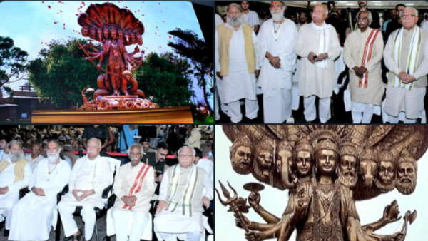 हरियाणा के कुरुक्षेत्र जिले में गुरुवार को भगवान श्री कृष्ण के विराट स्वरूप का लोकार्पण किया गया। गीता संस्थान केंद्र से आरएसएस के सरसंघचालक डॉ. मोहन भागवत, हरियाणा के राज्यपाल बंडारू दत्तात्रेय, मुख्यमंत्री मनोहर लाल ने भगवान श्रीकृष्ण के विराट स्वरूप का लोकार्पण किया। इस अवसर पर गीता के श्लोक का उच्चारण भी किया गया। ज्ञानानंद महाराज ने मोहन भागवत को सम्मानित किया। इस अवसर पर मुख्यमंत्री मनोहर लाल ने कहा कि भगवान श्री कृष्ण ने अर्जुन को द्वापर युग में इसी धरती पर अपने विराट स्वरूप के दर्शन कराए थे। हमारा प्रयास उसी ऐतिहासिक घटना को 21वीं सदी में जींवत करने का है। इंद्रदेवता के आदेश पर कुरुक्षेत्र में पहुंचे हैं। आज गुप्त नवरात्रि का महत्वपूर्ण दिन भी है। इस दिन किए जाने वाला कोई भी कार्य फलदायी होता है। भगवान श्री कृष्ण की विराट स्वरूप प्रतिमा का अनावरण हुआ है।