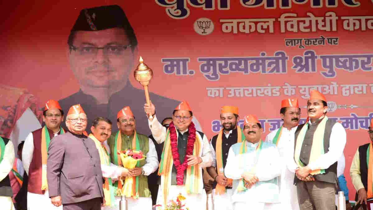 मुख्यमंत्री पुष्कर सिंह धामी ने बुधवार को रामलीला मैदान, हल्द्वानी, में नकल विरोधी कानून लागू करने के उपलक्ष में भारतीय जनता युवा मोर्चा द्वारा आयोजित आभार रैली में प्रतिभाग कर जनसभा को संबोधित किया। मुख्यमंत्री धामी ने इस अवसर पर घोषणा की कि समूह 'ग' की कोई भी परीक्षा चाहे वह लोक सेवा आयोग से बाहर की हो या लोक सेवा आयोग के द्वारा कराई जा रही हो। सभी परीक्षाओं में साक्षात्कार की व्यवस्था तत्काल प्रभाव से समाप्त कर दी जाय। इसमें तकनीकी और गैर तकनीकी पद भी सम्मिलित होंगे अर्थात् जेई जैसे तकनीकी पदों में भी साक्षात्कार की व्यवस्था पूर्ण रूप से समाप्त कर दी जाएगी।