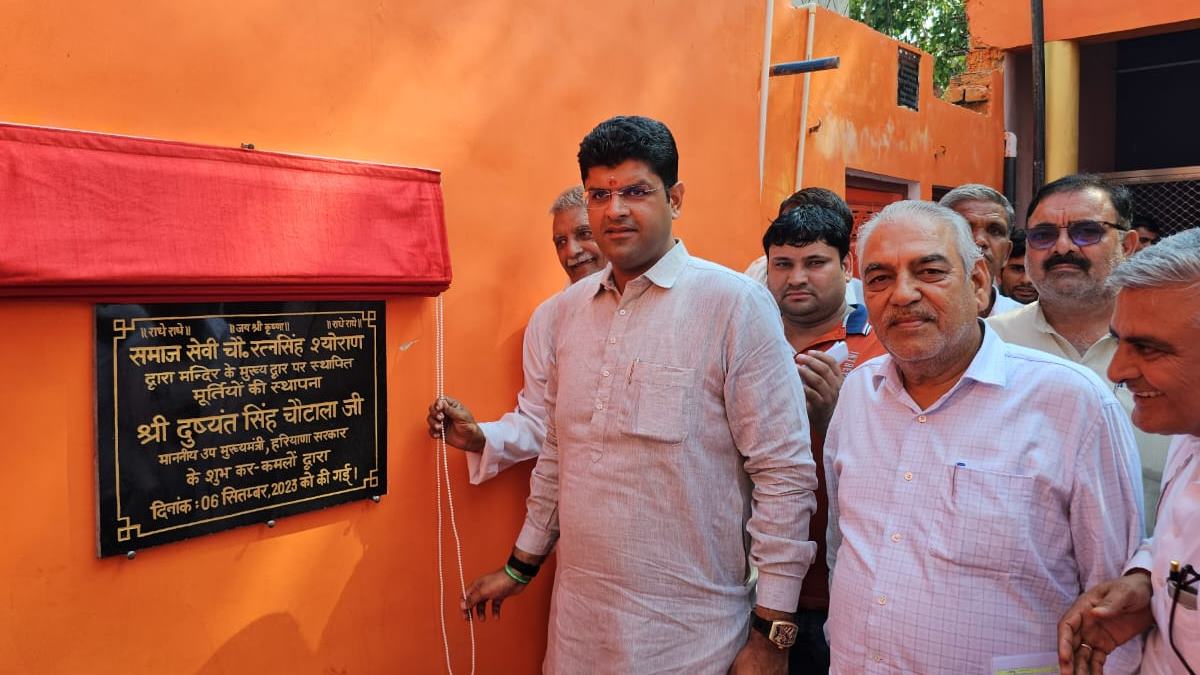 चरखी दादरी में डिप्टी सीएम दुष्यंत चौटाला ने किया राधा-कृष्ण की मूर्ति का अनावरण