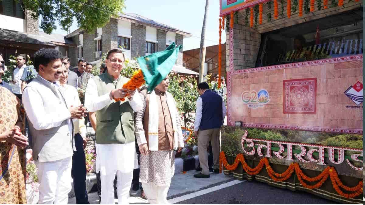 मुख्यमंत्री पुष्कर सिंह धामी ने गणतंत्र दिवस परेड-2023 में प्रथम स्थान पर रही उत्तराखण्ड राज्य की झांकी ‘मानसखण्ड' को प्रदेश के जनपदों/ब्लॉक मुख्यालयों तथा मुख्य स्थानों पर प्रदर्शन हेतु फ्लैग ऑफ किया।
