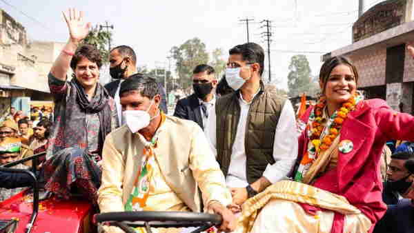 नोएडा, 8 फरवरी 2022: उत्तर प्रदेश विधानसभा चुनाव के पहले चरण के प्रचार के अंतिम दिन कांग्रेस नेता प्रियंका गांधी वाद्रा और राजस्थान के पूर्व उपमुख्यमंत्री सचिन पायलट मेरठ के हस्तिनापुर पहुंचे और लोगों से राज्य में कांग्रेस की सरकार बनाने की अपील की।