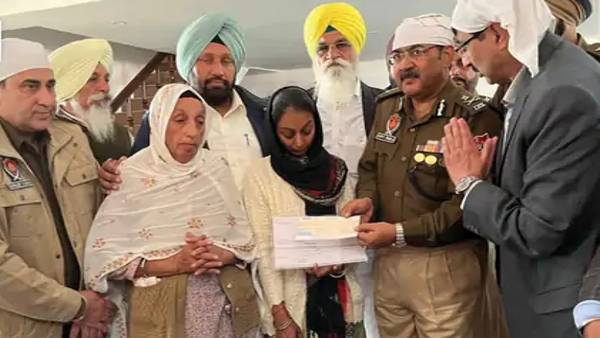 पंजाब: शहीद कांस्टेबल मनदीप सिंह के परिवार को मान सरकार ने सौंपा 2 करोड़ रुपए का चेक